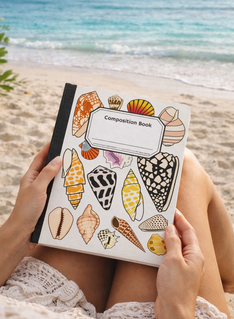 This 160-page college-ruled composition notebook features a Hawaiian Cone Shell design that includes Hebrew cones, flea cones, penniform cone shells, marble cone started cone shell and chaldean cone shells. This composition book is perfect for students, teachers, and ocean lovers. Measuring 7.5 x 9.5 inches, it includes 80 sheets with clean, evenly spaced lines for notes, journaling, homework, or creative writing. The soft matte cover showcases an ocean-inspired design, making it a stylish and functional addition to school supplies, classroom desks, or everyday writing at home or work.