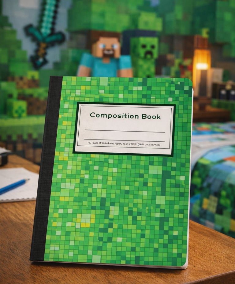 This 160-page wide ruled composition notebook features a bold green pixel gamer cover, perfect for kids who love gaming and creative school supplies. Sized for everyday classroom use, it’s ideal for handwriting practice, class notes, journaling, homework, and back-to-school organization.